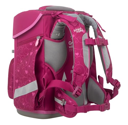 • SCHOOL-MOOD – Schulranzen Set Hund, 7-teilig – Timeless Air+ – ergonomischer Schulranzen Jungen & Mädchen – Schultasche für Kinder in der 1. bis 4. Klasse – Leni (Hund)