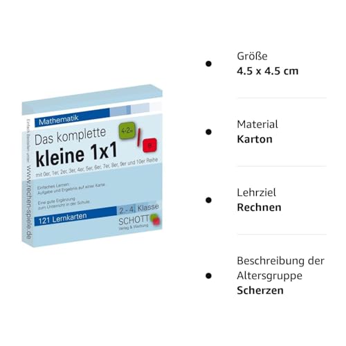 Schott Verlag und Werbung Mathematische Fähigkeiten, Das komplette kleine 1×1, 121 Lernkarten