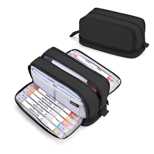 • EASTHILL große Kapazität Federmäppchen Pen Pouch Organizer Canvas Bleistift Tasche mit Griff Schulbedarf für Mädchen-Schwarz