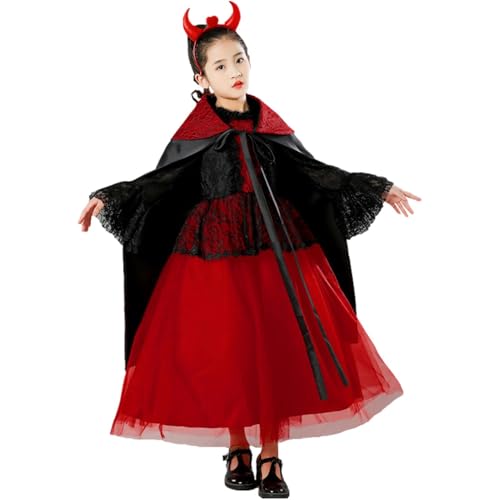 • Vampir-Kostüm für Mädchen, Halloween-Vampir-Outfit, viktorianische Outfits für Urlaub, Maskerade, Party, Bühnenshow, Festival, Feier, Familientreffen, Theateraufführung