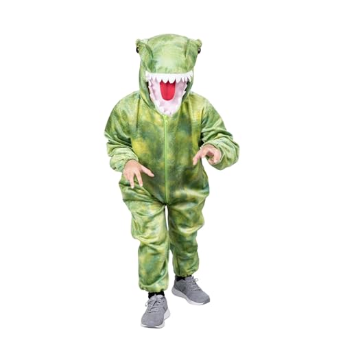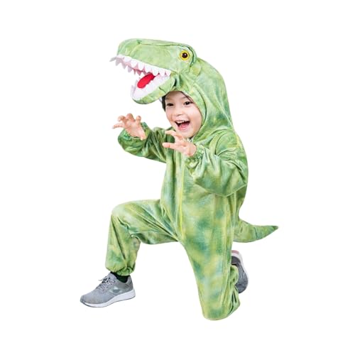 • Aniepaa Dino Kostüm Kinder, Dinosaurier Kostüm Kinder mit Kapuze Flanell Winter Overall kostüme für Faschingskostüme Junge (90-105cm)