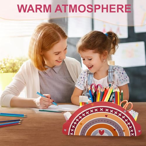 SHENSAIGO Stiftehalter Kinder Regenbogen, Holz Stiftehalter Kinder, Schreibtisch Organizer mit 12 Farbstifte, Stifte Organizer Stiftehalter Schreibtisch für Home Office Klassenzimmer Organisation