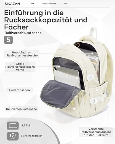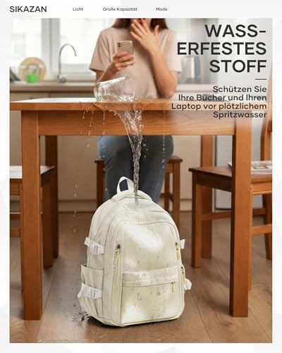 sikazan Schulrucksack Teenager Jungen Mädchen Mit Laptopfach Rucksack Schule Groß Schultasche Damen, School Backpack Black Boys Girls School Bag, Beige