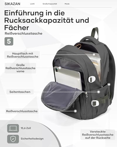 • 【STILVOLL & SICHER】 Für Sicherheit sorgt ein verstecktes Anti-Diebstahl-Fach auf der Rückseite für Ihre Wertsachen. Das minimalistische Design ist zeitlos: Besonders beliebt ist unser Rucksack für die Schule in Schwarz, aber auch in Tiefrot oder Beige ist er ein echter Hingucker auf dem Campus.