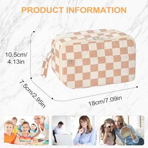 • VICDUEKG Federmäppchen Mäppchen Federtaschen Etui 4 Fach Schulmäppchen Große Kapazität kariert Pencil Case Stifttasche für Schule & Büro (Schwarz)