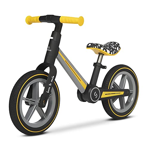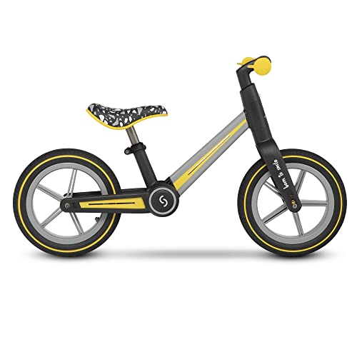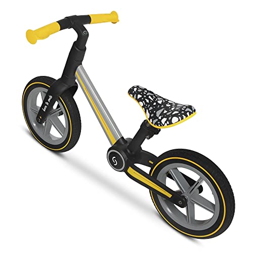 skiddoü Laufrad Ronny, ab 2 Jahren faltendes Lernlaufrad bis zu 30 kg, Aluminium-Rahme, 12 Zoll Räder, höhenverstellbar, lenkradschloss, Balance Bike, Retro Design, gelb