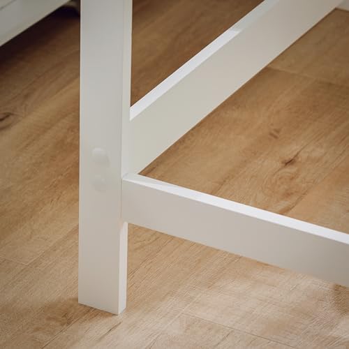 • Gewicht: ca. 15kg, Belastbarkeit: bis 50kg, Material: Arbeitsplatte: Span mit Natur-Optik, Gestell: MDF, weiß lackiert