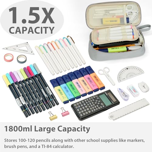 SPACEMATE Beutel haben ein Fassungsvermögen von 1800 ml, ist 1,8 mal mehr als andere (1000 ml). Es ist einfach, 100 Bleistifte aufzubewahren und kann auch viele Arten von Schulbedarf wie Marker, Pinselstift, Lineal, kleine Notizbücher, Ladegerät und TI-84 Taschenrechner aufbewahren.