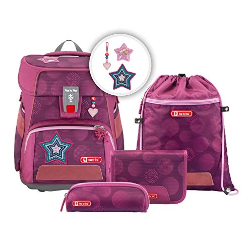 Step by Step Schulranzen-Set Space „Glamour Star Astra“ 5-teilig, lila-pink, ergonomischer Tornister mit Reflektoren, höhenverstellbar mit Hüftgurt für Mädchen ab der 1. Klasse, 20L