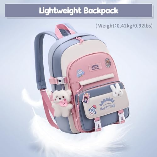 Tanou Schultasche Mädchen Rucksack Schule Teenager, 20 Liter Schulrucksack für Mädchen der 3. bis 7. Klasse, Leichter Wasserabweisender Nylon Kinder Schulranzen, Blau