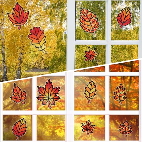 TGFIX 12Pcs Herbst Basteln Kinder Ahornblatt Bastelset Papier Herbstdeko Kreativsets Bastelhandwerk DIY Herbst Fensterbilder Kunsthandwerk Herbstblatt Handwerk für Jungen Mädchen Herbst Geschenk