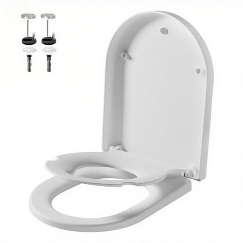 Toilettensitz Kinder mit Absenkautomatik D-Form Weiß, Antibakterieller Toilettendeckel mit Kindersitz, Abnehmbar klodeckel, Quick-Release zur einfachen Reinigung, Belastbarkeit von 150kg