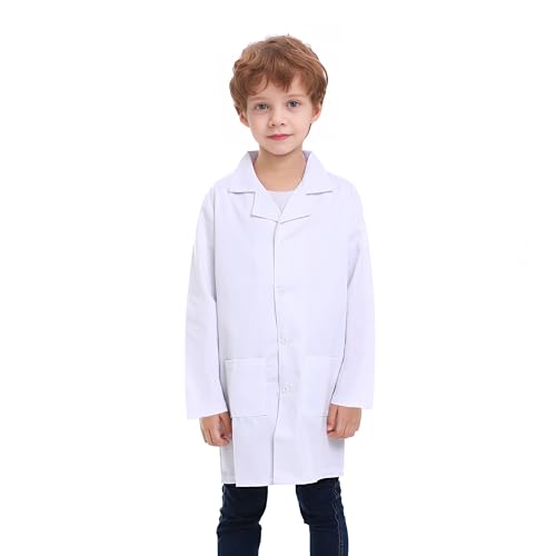 TopTie Kinder Langarm Laborkittel Kinder Arzt Kostüm für Schulwissenschaftler Halloween-Kostüm