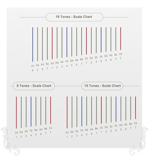 • 8 Noten (C4 D4 E4 F4 G4 A4 B4 C4), 15 Noten (C4 D4 E4 F4 G4 A4 B4 C5 D5 E5 F5 G5 A5 B5 C6), 19 Noten (F3 G3 A3 B3 C4 D4 E4 F4 G4 A4 B4 C5 D5 E5 F5 G5 A5 B5 C6). Jedes Produkt wird vor dem Versand präzise abgestimmt.
