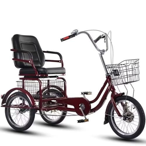 • Generisch 3-Rad-Fahrrad für Senioren und Erwachsene, großes Rikscha-Dreirad mit Pedalen, Tandem-Dreirad mit Rücksitz, Cruiser-Fahrrad mit Doppelbremsen, hydraulische Vordergabel
