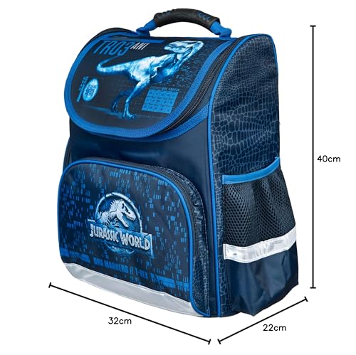 • Tornister mit viel Stauraum – Der Tornister mit Jurassic World Motiv fasst 15 Liter Volumen für Schulzubehör. Das Leergewicht des Schulranzens beträgt ca. 910 Gramm, Maße ca. ca. 40 x 32 x 22 cm