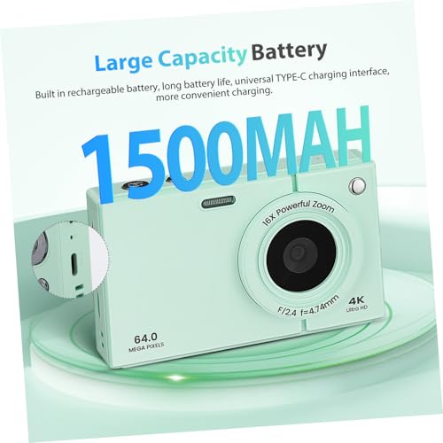 • Großzügige speicherlösung: genießen sie die erweiterte nutzung dieses digitalkamera-modells für erwachsene mit 64 gb speicher, sodass sie ohne unterbrechungen große alben auf ihrer reise-digitalkamera aufnehmen können, kamera für teenager, digitalkamera grün