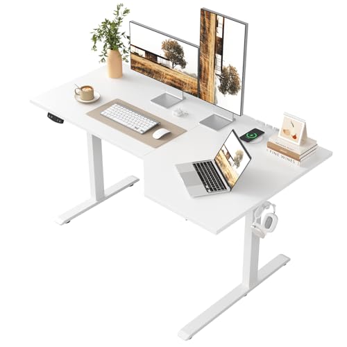 • Klicelor L-förmiger Höhenverstellbarer Schreibtisch, 160 x (60-90 cm), Elektrischer Stehpult, Sitz-Steh-Schreibtisch für das Home Office, Ergonomischer Computertisch mit Spleißplatte, Weiß
