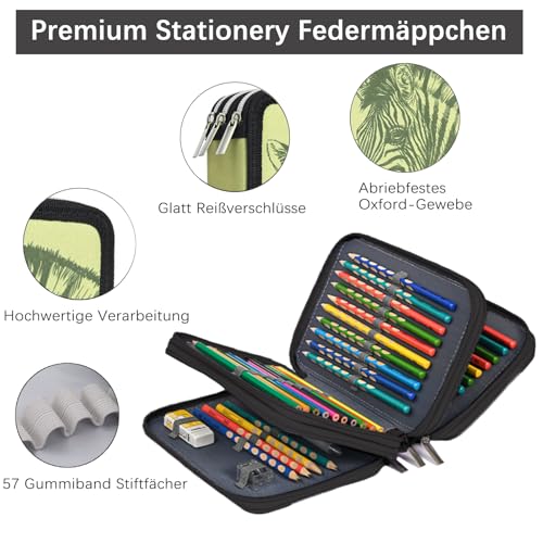 Veroa Federmäppchen 3-Fach – Quadratisch, Mehrschichtig,Große Kapazität Mäppchen Federmäppchen Gelbes Zebra Kinder 3 Fächer – 57 Pockets für Schule,Teenager,Kinder,Junge,Mädchen