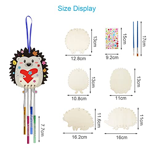WEDNOK 5tlg Igel Windspiel Bastelset Kinder Herbst Basteln Holz Herbstdeko Bastelhandwerk Kreativsets Igel Klangspiele zum Basteln für Erntedankfest Herbst Mädchen Junge