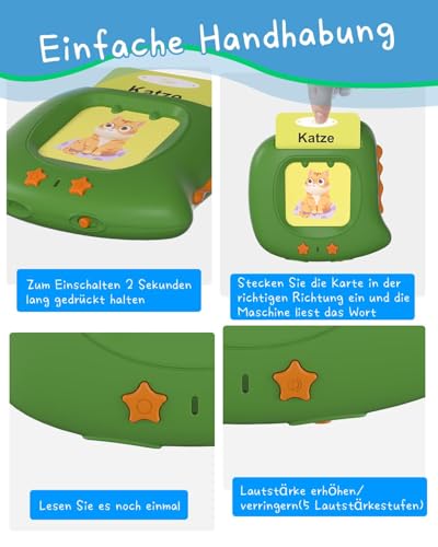 • 🌟Frühes Lernen leicht gemacht: Fördern Sie spielerisch die Sprachentwicklung mit den sprechenden Karten. Mit diesem sprechenden Lerngerät müssen Eltern die Wörter nicht mehr mühsam wiederholen – es entlastet sie und fördert die Selbstständigkeit des Kindes. Lernspiele ab 1 2 Jahren wecken das Interesse, verbessern die Sprachfähigkeit und sind perfekt für Vorschulkinder und Kinder mit Autismus geeignet.