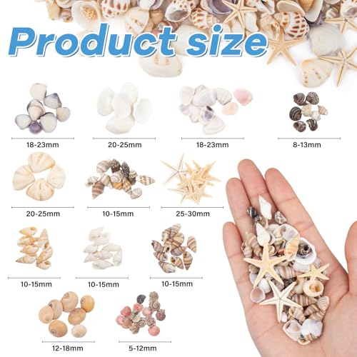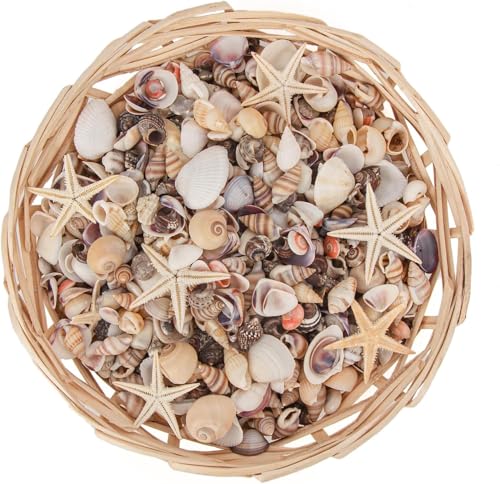 • Gemischte Mini-Muscheln: Dieses Paket enthält 1000 gemischte Mini-Muscheln und ca. 15 Seesterne mit über 20 verschiedenen Arten von winzigen Muscheln und Seestern-Dekor. Gewicht ca. 230 g