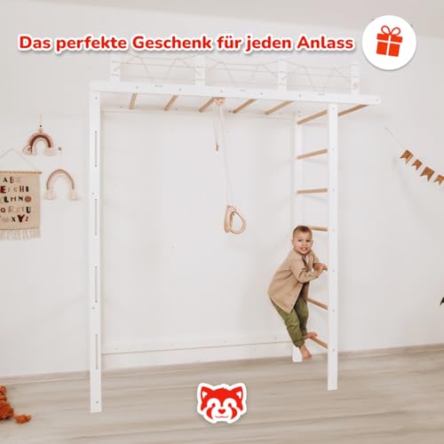 Wood And Hearts Drinnen Schwedische Leiter, Klettergerüst Indoor, Indoor Kletterwand Kinder, Turngeräte in Weiß und natürliche Holzfarbe mit Paar Gymnastikringe