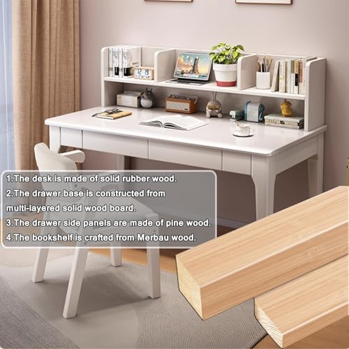 • 【Material des Schreibtisches】Geeignet für Kinder und Erwachsene. Der Schreibtisch ist aus massivem Gummibaumholz gefertigt. Der Schubladenboden besteht aus mehrschichtigem Massivholz, die Seitenwände aus Kiefernholz und das Bücherregal aus Merbauholz.
