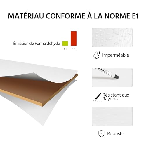 • Ausgewählte Materialien: Dieesr Tisch besteht aus den robusten MDF-Holzplatten in der Klasse E1 und ist wasserabweisend beschichtet. Die beschichtet Oberfläche schütztz den Tisch effektiv vor Kratzern und äußeren einflüsseln. Dadurch haben sie auch nach langer nutzung noch immer einen Ordentlich aussehenden Schreibtisch
