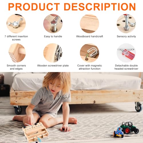 • 【 Hochwertige & Sichere】 Unsere holz schraubbrett aus Holz bestehen aus robustem, strapazierfähigem und glänzendem Buchenholz, robusten Metallteilen für sicheres Spielen für Kinder ab 3 Jahren. Leichtes und tragbares Design, einfach in einen kleinen Rucksack zu stecken, der ideale sensorische Entwicklungspartner für unterwegs.