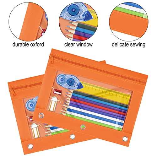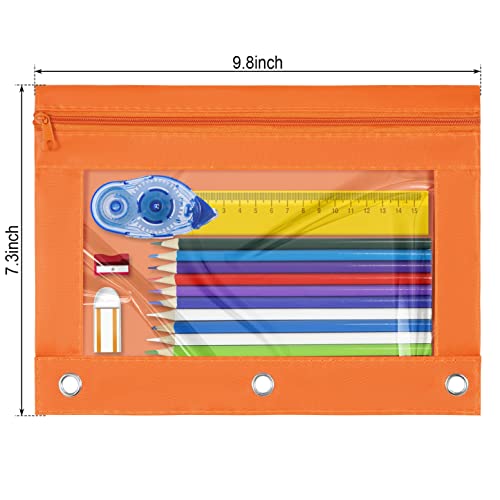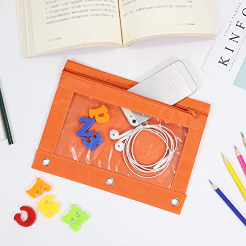 YoeeJob Federmäppchen für 3 Ringbuch, Reißverschluss-Bleistiftbeutel Bulk, Federmäppchen mit transparentem Fenster für Unterricht, Schule, Büro, Schreibwaren, Orange, 24 Packungen