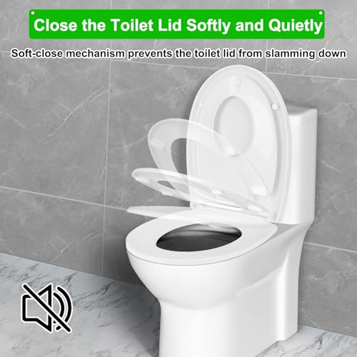 • Toilettendeckel mit Absenkautomatik: Verbesserte integrierte Dämpfungstechnologie, mit nur einem Klick schließen Deckel und Sitz langsam und sanft. Unter dem Toilettensitz befinden sich 4 Anti-Rutsch-Kissen, die Geräusche reduzieren und ein Verrutschen des Sitzes während des Gebrauchs verhindern können. Wir sind bestrebt, Ihnen und Ihrer Familie eine ruhige und komfortable Umgebung zu bieten.