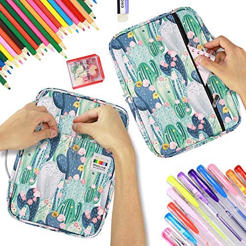 YOUSHARES Farbiges Federmäppchen, 220 Fächer, Stifteetui, Organizer mit praktischer Hülle und Reißverschluss, mehrlagiger Halter für Prismacolor Buntstifte und Gelschreiber (Kaktus)