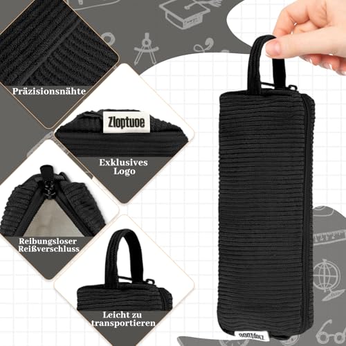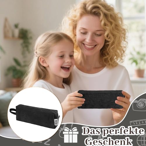 • Deepton Federmäppchen Cord, Stifte Mäppchen Mädchen, Schwarz Aesthetic Pencil Case Girl Adults, Schlamppermäppchen Damen, Federtasche Erwachsene Federmappe für Schule, Büro