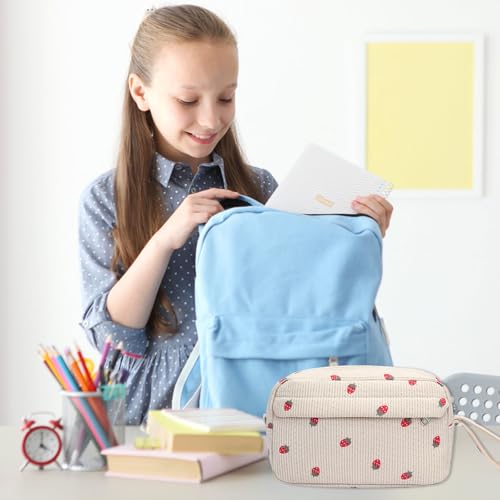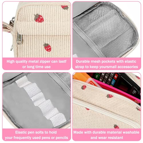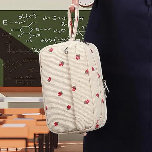 ZXTGBQ Federmäppchen, Federmäppchen Mäppchen Cord-Stoff, Groß, Bleistiftbeutel für Schule, Federmappe, Federtasche Stiftetasche Stiftemappe Pencil Case Schulmäppchen für Schule, Erdbeer Muster