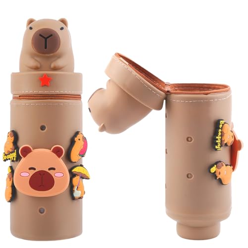 • Capybara Federmäppchen, 2-in-1 Silikon Kawaii Schreibwaren mit Reißverschluss Federmäppchen Pencil Case 2-in-1 Capybara Stand Up Tischstifthalter Stifthalter Bleistifttasche Mädchen Junge für Schule