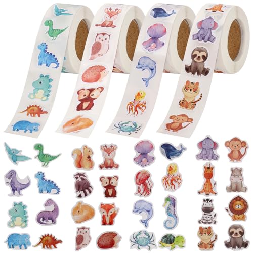 • 2000 Stück Belohnungsaufkleber Kinder Tier, 4 Rolle Motivationsaufkleber für Kinder, 2.5cm Animal Sticker Rolle, 32 Muster Cartoon Tier Aufkleber, für Skateboard Gepäck Scrapbook Laptop Trinkflasche