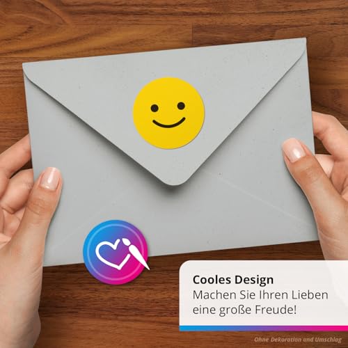 • 120 gelbe Aufkleber rund Belohnung: 5 Aufkleberbögen je 24 runden Stickern mit bunten Smileys