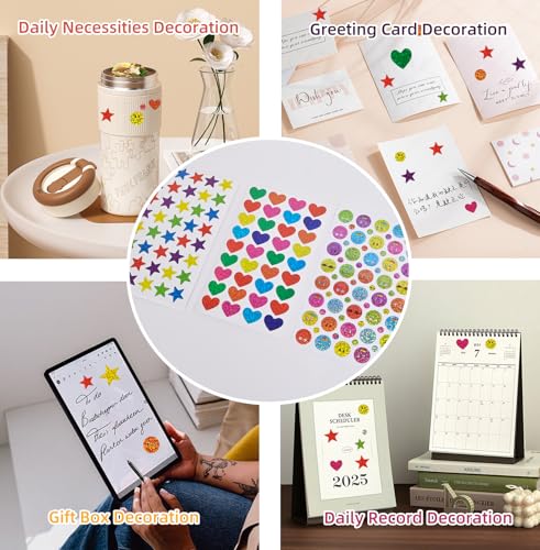 Unsere Aufkleber enthalten 3 Formen, 10 Blatt Sternaufkleber, 10 Herzaufkleber, 10 Smiley-Gesichtsaufkleber, insgesamt 1440 Stück kleine Aufkleber, fügen Sie Kinderaktivitäten zum Lachen hinzu, füllt jeden Moment mit endloser Freude.