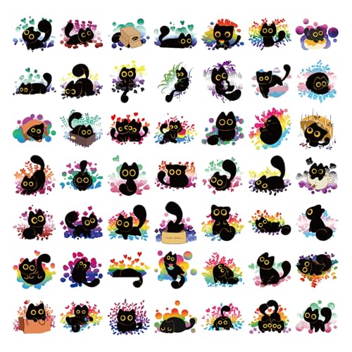50-teiliges Kätzchen Aufkleber Set für Sammelalbum, Laptop, Wasserflasche, Handyhülle und Skateboard, Bastelaktivitäten für Kinder, Aufkleber für Schulaktivitäten