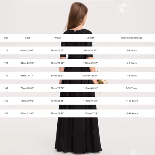 A-Linie Sommerkleider Mädchen Rüschen Mittellange ärmel Blumenmädchen Kleider Kinder Einfarbig Partykleid Elegant Ballkleid Rundhalsausschnitt Plisseekleid Hochzeitskleid (Black, 13-14 Years)