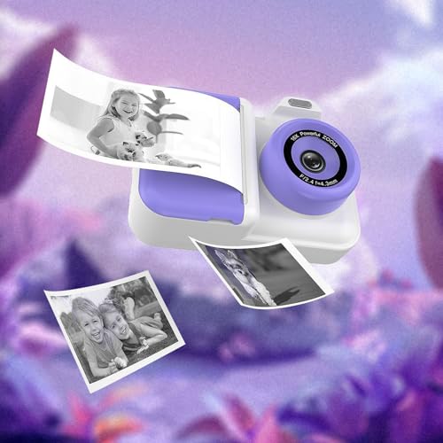 Acouto Kinderkamera mit Bildschirm, Klares 2,4-Zoll-Display Zum Einfachen Betrachten und Drucken von Fotos, Integrierter Blitz für Lebendige Fotos, 1-MP-Kameras Vorne und Hinten, (Violettweiß)