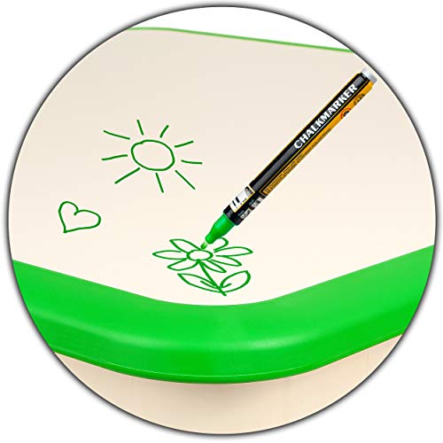 “ grün “ _____ mit weißer, BESCHREIBBARER Tischplatte ( kann mit Whiteboard Stiften oder Kreidestiften bemalt -> wieder weggewischt werden )