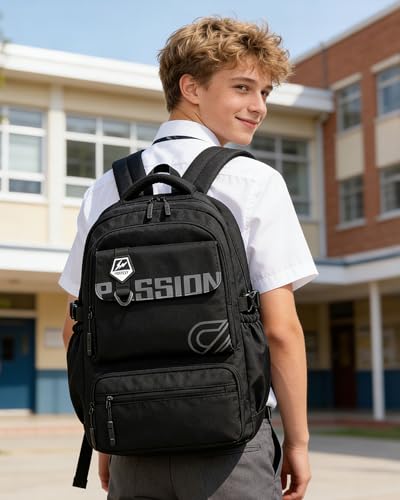 Amythe Schulrucksack Jungen Teenager 10-18 Jahre, Groß Rucksack Junior mit Laptopfach für Oberstufe, Wasserdicht Schulranzen für Schule & Freizeit 25L, Schwarz