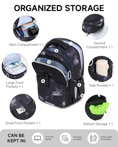 • LANGLEBIG 900D-OXFORD-GEWEBE: Der Rucksack schule teenager für 5. – 13. Klasse das dick, abriebfest, reißfest und kratzfest ist. Er hält problemlos dem täglichen Gebrauch in der Schule sowie Abnutzungen bei Kurzreisen stand. Das wasserabweisende Material lässt leichte Spritzer schnell abperlen, ohne einzudringen, verlängert die Lebensdauer. Rucksack teenager jungen, der für den langfristigen Gebrauch durch Teenager entwickelt wurde!