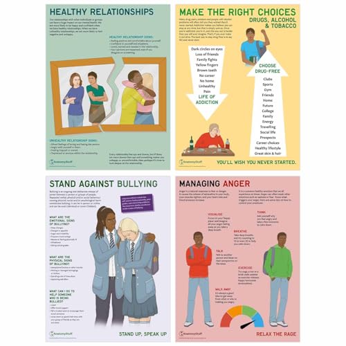 AnatomyStuff PSHE 15 PACK Poster-Kollektion, 45 x 60 cm, Lernset für Schulen, Gesundheit und Wohlbefinden Klassenzimmer-Poster