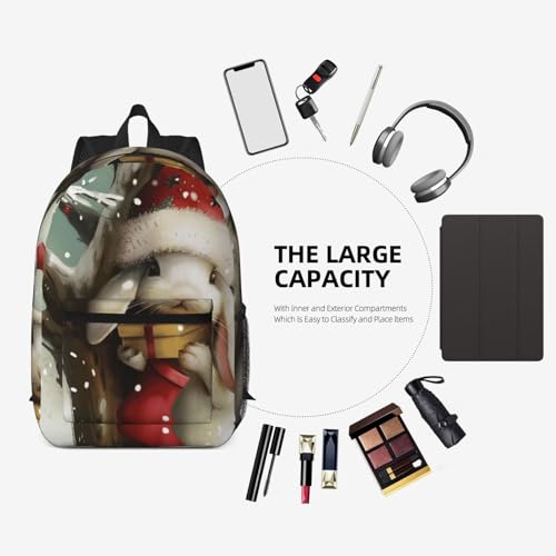 AQRJLPO Coconut Beach Sonnenuntergang Hängematte Druck 43,2 cm Rucksack mit Taschen, leicht und geräumig für Schule, Reisen, Arbeit, Weihnachts-Hase, One size