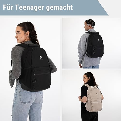 • FÜR TEENAGER GEMACHT: Der Laptop oder das Tablet kann in einem gepolsterten Fach untergebracht werden. Trinkflasche und Regenschirm finden in den elastischen Außenfächern Platz. Praktisch: Neben den großen Fächern für Bücher und Ordner gibt es kleine "Organizer-Fächer" für Stifte, Handy oder Taschenrechner.