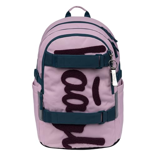 Baagl Schulrucksack Set Mädchen 5 Teilig, Skateboard Rucksack, Schultasche ab 3. Klasse, Grundschule Ranzen mit Brustgurt, Ergonomischer Schulranzen, 25 l (Rose)