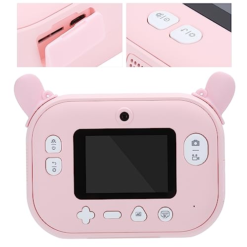 BONKZEBU Kinderkamera, Cartoon-Digitalkamera, Automatischer Druck von Fotos, 2,4-Zoll-Display für, Stoßfeste Hülle, Rosa